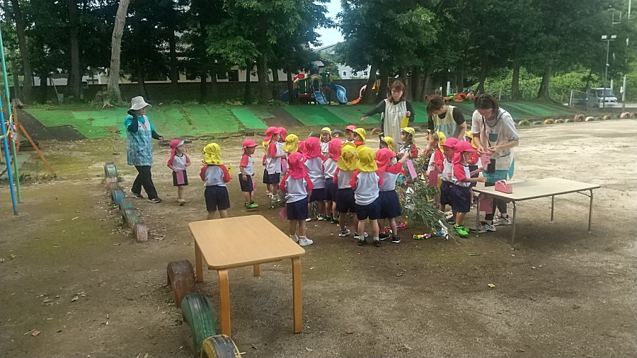 笹焼きを行いました。みんなの願いが叶いますように・・短冊には○○が欲しい、○○に行きたい、○○になりたい・・思わず目を細めてしまうほど健気な(けなげな)思いが込められていました。どうぞお子さんに聞いてみてください。
