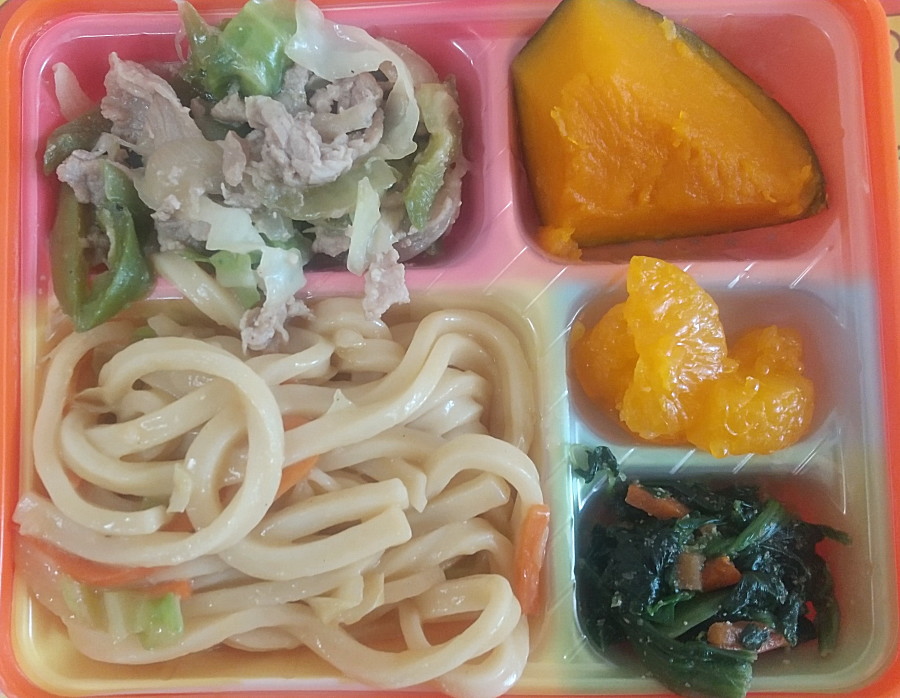 本日のにこにこ棟給食です。焼うどん、美味しそうですね。