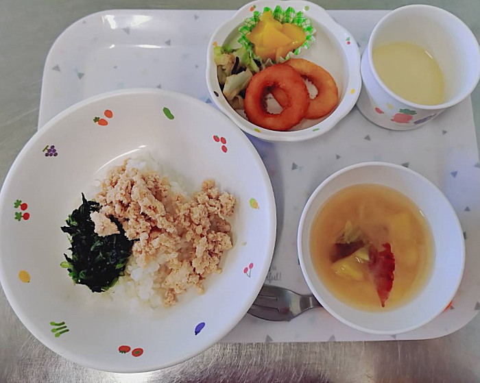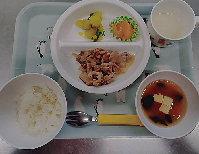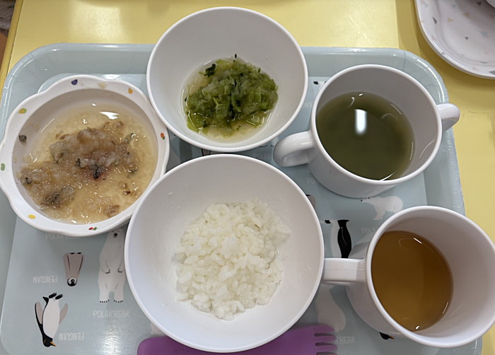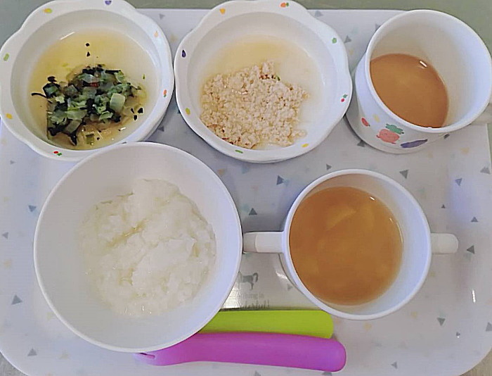 ぽかぽか棟給食です。2枚目、本日から離乳食が加わりました。
