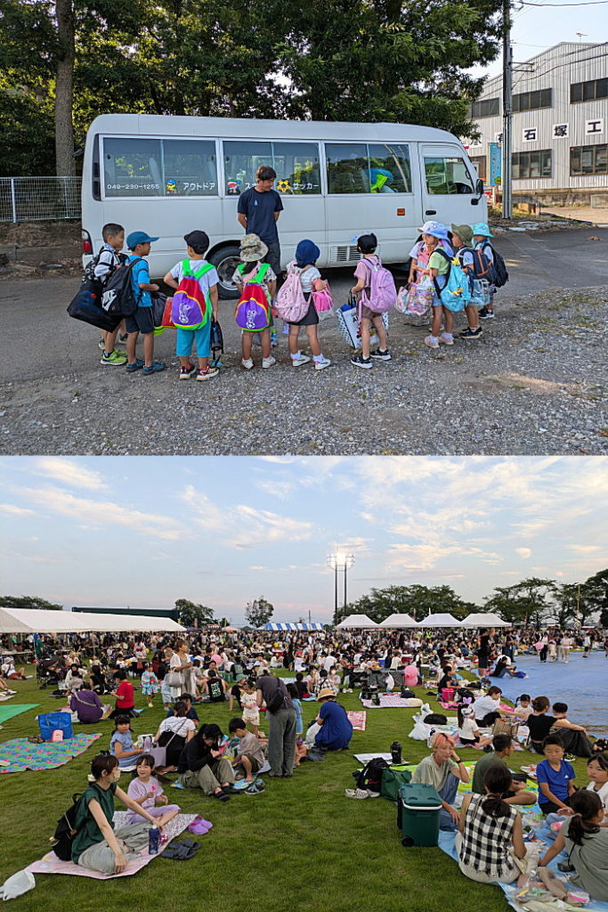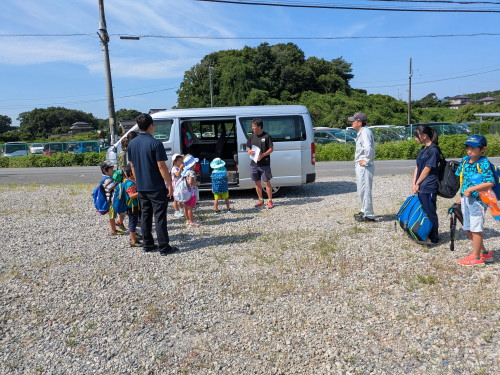 上写真は8月3日(日)幼体連冒険クラブ日帰りキャンプ出発の様子(幼児、小学生)です。埼玉県で川遊びや魚つかみを楽しんできたようです。