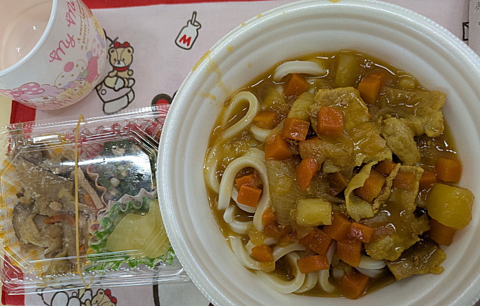 本日のにこにこ棟給食です。カレーうどんメニュー。