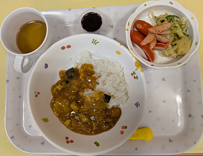 ぽかぽか棟給食、同じくカレーメニューです。