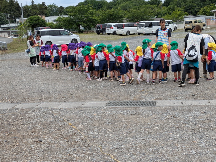 ももさくらんぼクラスも牛小屋から弘経寺参道トンネル付近まで足を延ばしました。お帰りなさい。