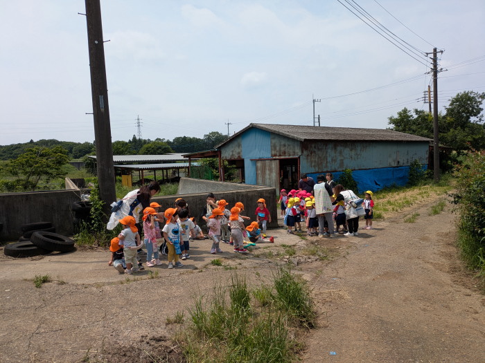 0.1.2.3歳児クラスは牛小屋付近にお散歩。