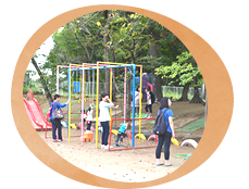 屋外の子育て支援プログラムです。 広い園庭でたくさん遊ぶことができ、園児の自由遊びや体操教室などもご覧になれます。 開放時間内なら、どの時間に来ても大丈夫です。 子育てについてのお悩みやご相談などもありましたら、担当職員にお声がけください。 予約が必要となりますので、園までご連絡ください。